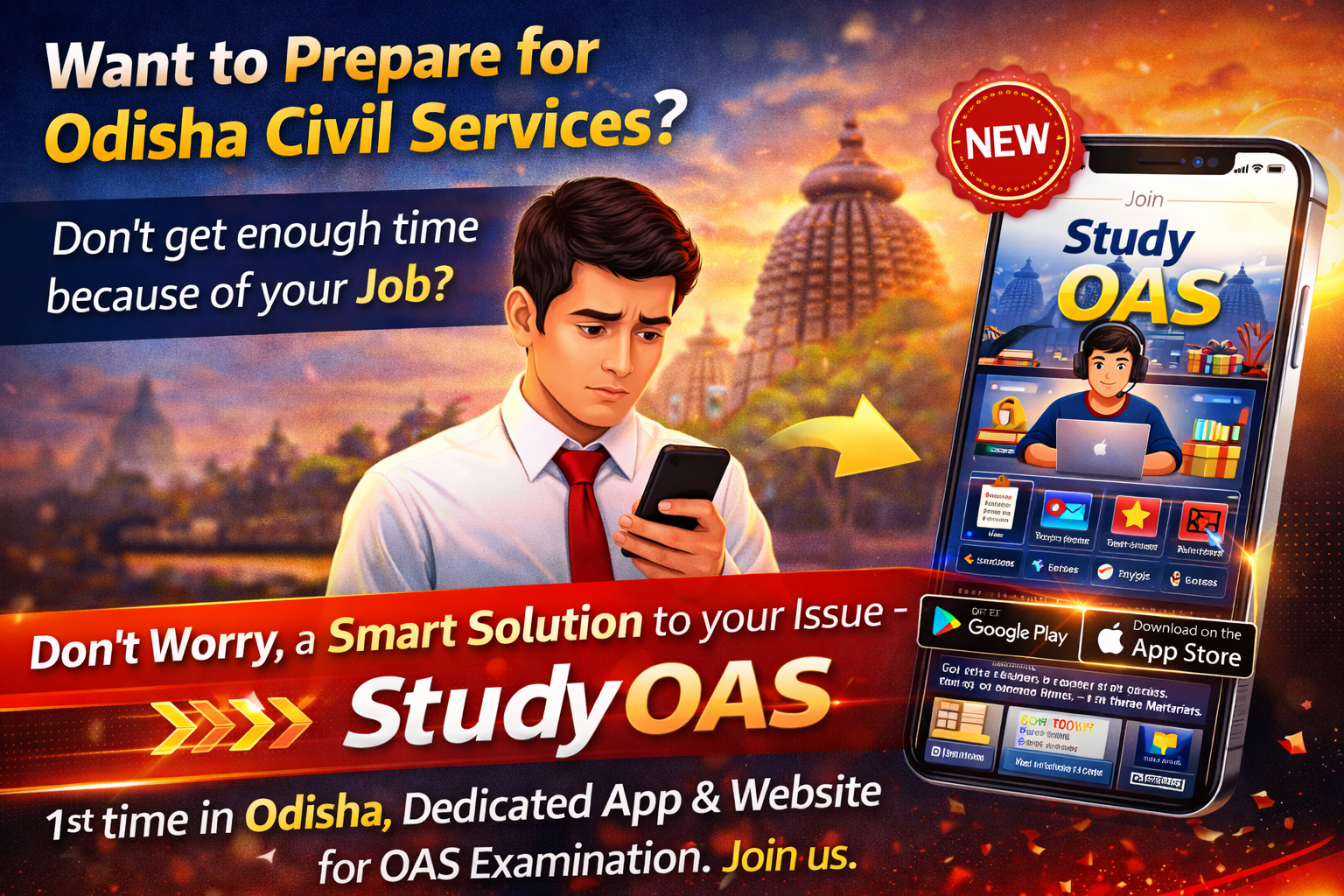 StudyOAS is an exclusive platform designed to help you succeed in the Odisha Administrative Service (OAS) and other state civil services exams. We offer structured study materials tailored to the OAS Prelims and Mains syllabus, practical explanations, and real-life examples to make learning easier. Our high-quality mock tests and quizzes are crafted by experienced educators to help you assess your progress. Plus, we share smart preparation strategies, daily current affairs, and expert guidance to keep you motivated. Join our community of aspirants and let StudyOAS be your trusted companion on your journey to success!